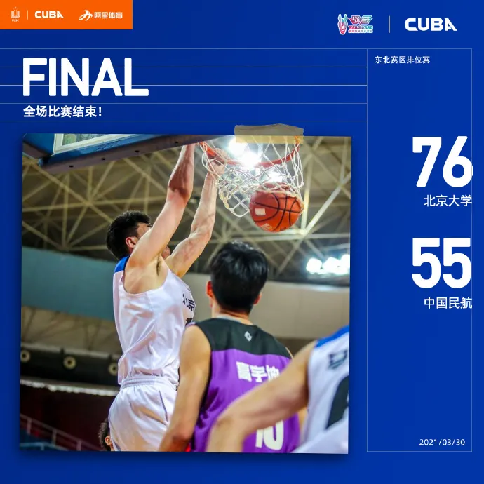 比赛一开场,北大男篮就展现出恐怖的球场统治力,半场结束,比赛就已经奠定了结局,最终北大76:55战胜中国民航大学,剑指总决赛!