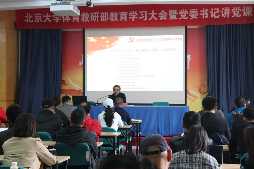 10月9日,北京大学体育教研部教育学习大会暨党委书记讲党课在五四体育中心205会议室召开。北京大学党委副书记、体育教研部直属党支部书记安钰峰以《对习总书记关于教育的“九个坚持”的逻辑关系和丰富内涵的理解》为题讲专题党课。体育教研部主任钱俊伟及其他党政班子成员、全体党员、入党积极分子等共120余名师生共同聆听了报告。会议由毛智和副书记主持。