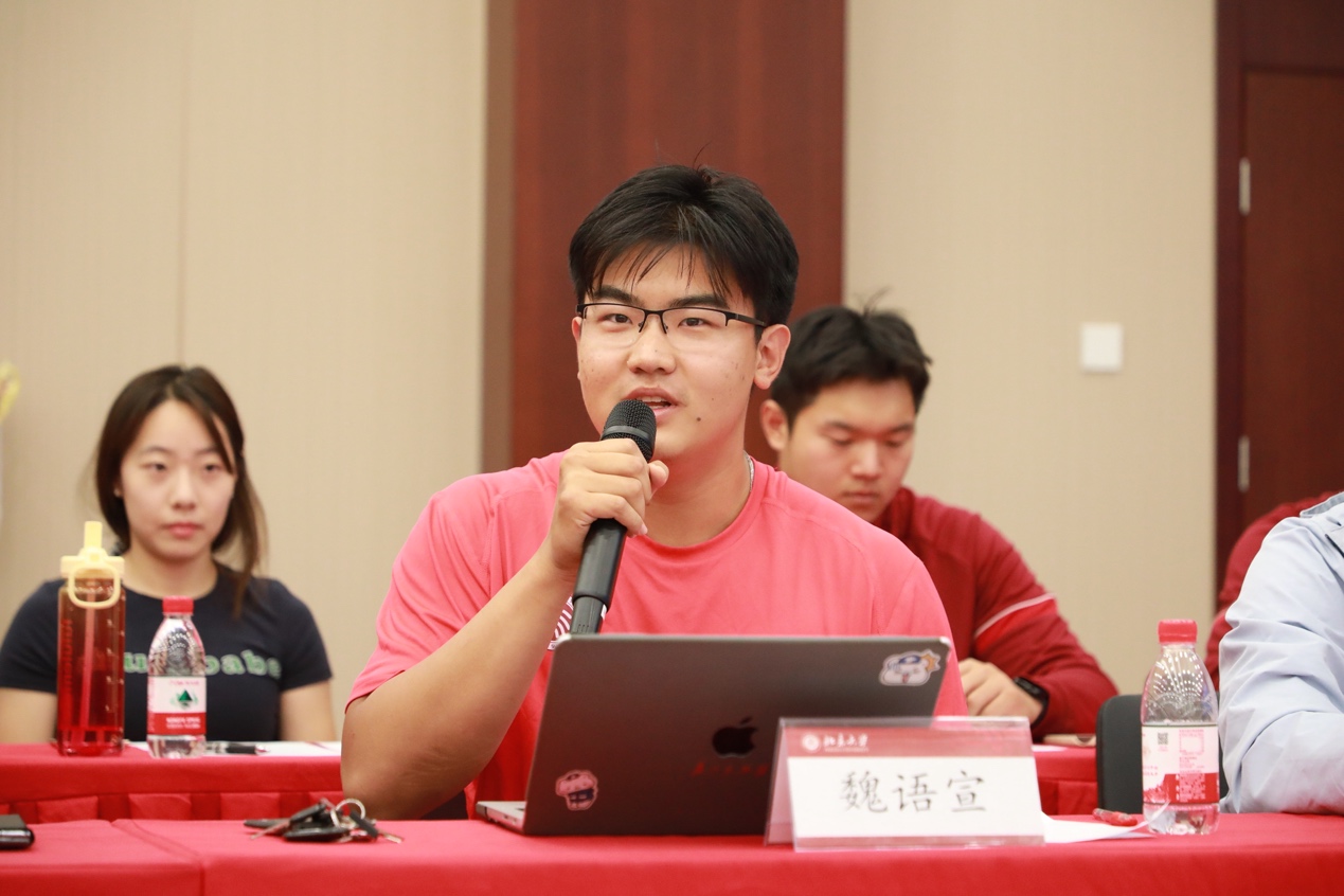 北京大学运动员代表魏语宣发言,他表示,体育和文化课都是学习的过程,一方面,要把体育精神和日常学习生活有机统一,相互拓展,另一方面,要积极学习学校、体育教研部以及其他高校的优秀做法,争取在各方面有所突破,争做社会主义接班人。最后,他认为同学们应该认真学习体育强国精神,增强同学、队友之间的凝聚力,深化体育人的责任担当。