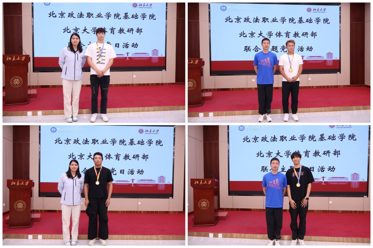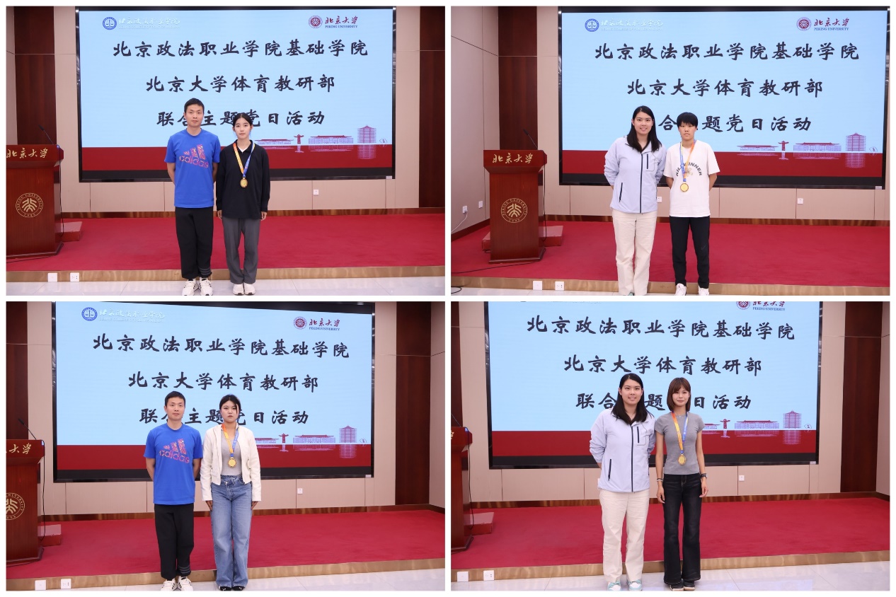 5月23日下午,北京大学体育教研部与北京政法职业学院基础学院联合举办“党建引领聚合力 体教融合促发展”主题党日活动,通过座谈交流、经验分享、颁奖仪式等形式,以党建引领深化校际合作,促进体育教育领域的交流合作。