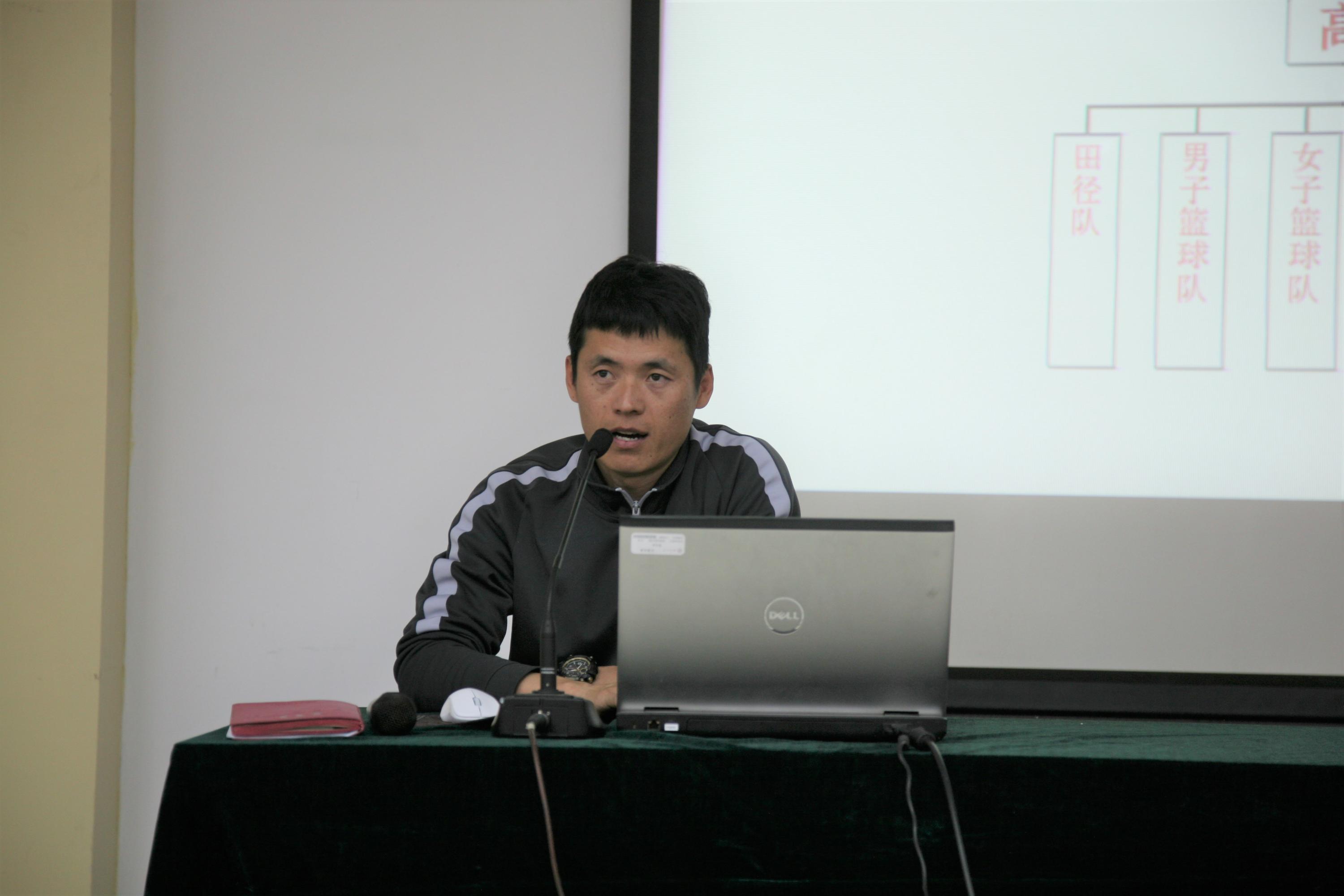 接下来,邢衍安老师分别对八支高水平代表队(田径、男篮、女篮、乒乓球、游泳、健美操、羽毛球和足球)的近期情况进行了介绍,随后对高水平代表队管理体系从招生、学分、保研、训练、竞赛等方面的内容进行讲述,并指出在日常管理中出现的问题,表达进一步完善代表队建设和管理体系的规划,全体教练员和运动员对代表队的近况和规划有了更加清晰的认识。