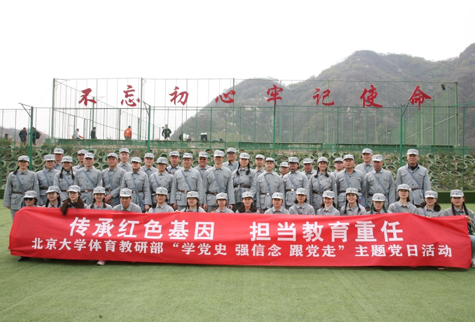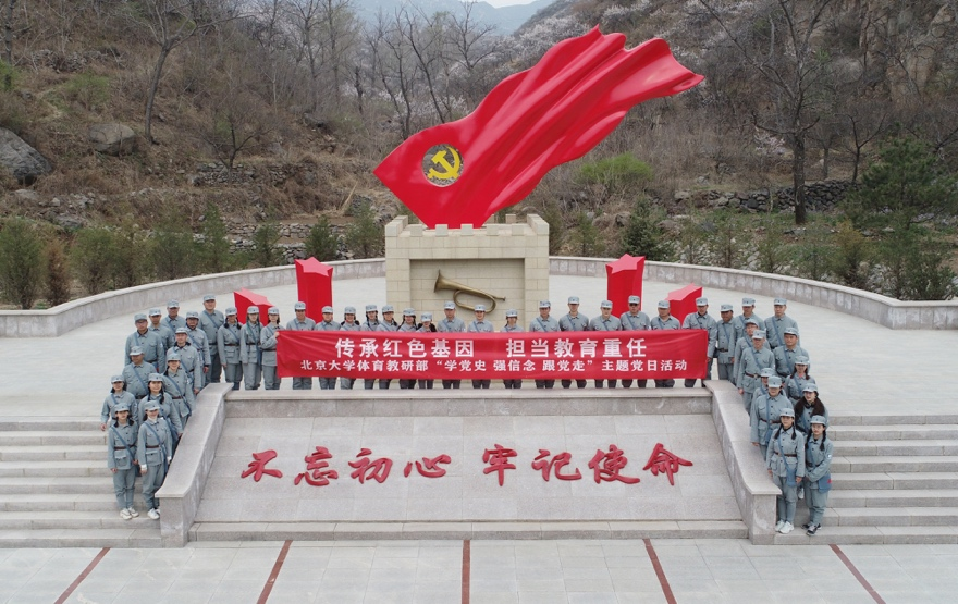 4月10日,体育教研部直属党支部在革命老区延庆大庄科红色教育基地,开展传承红色基因,担当教育重任--“学党史 强信念 跟党走”主题党日活动。体育教研部钱俊伟主任、毛智和副书记、王东敏副书记、郑重副主任、刘茂辉副主任、全体党员师生及教师代表等参加活动。