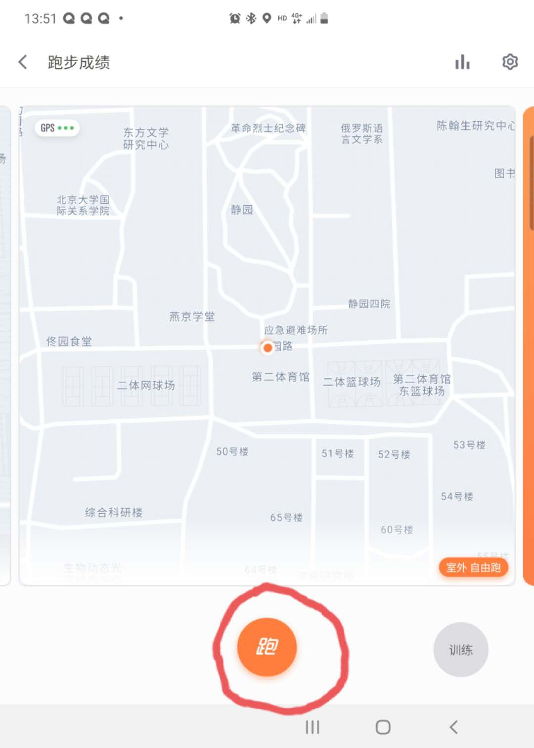 2.3、打开乐动力APP,确保已经使用北大账号登录,且手机GPS信号开启;