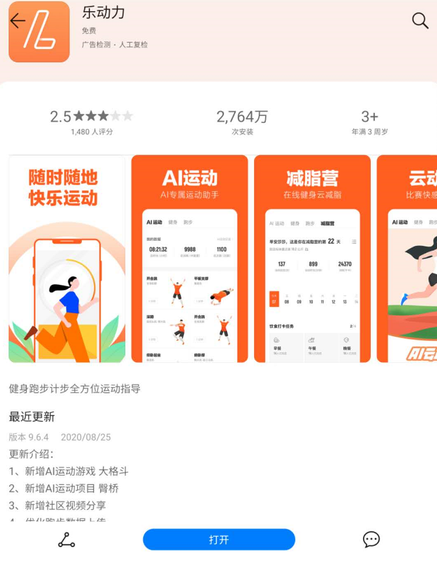 方法一:打开手机系统自带的应用商店,搜索“乐动力”下载并安装