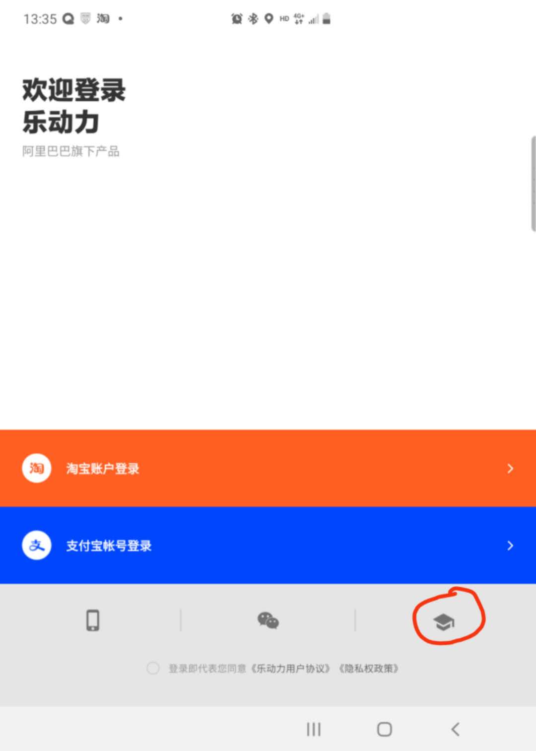 1.1、登录页面选择【其他登录方式】,点击“学士帽”依次输入北大默认登录账号账号和密码即可登录乐动力,登录过程需使用移动流量或WiFi;