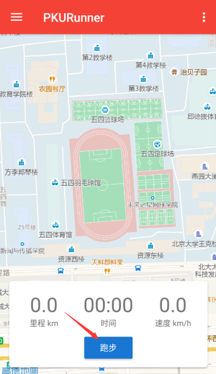 2.2、跑步前请到达学校指定有效运动地点,即五四体育操场;