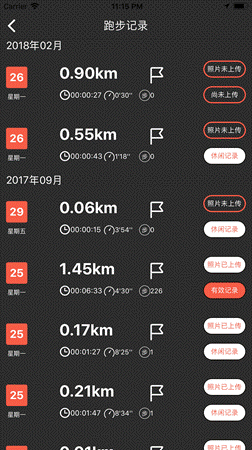 5.在记录页面可以看到当前跑步记录,点击可查看详细信息。