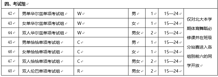 (六) 北大国标队队员至少跳三支舞,其余同学至少跳一支舞(包括单人单项,若同时选修拉丁舞和标准舞应同时报名拉丁舞和标准舞的一支舞),报名计入积分制考核;