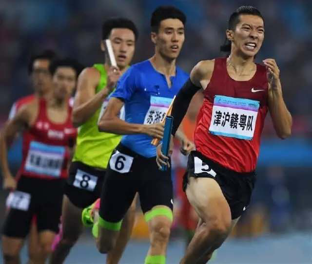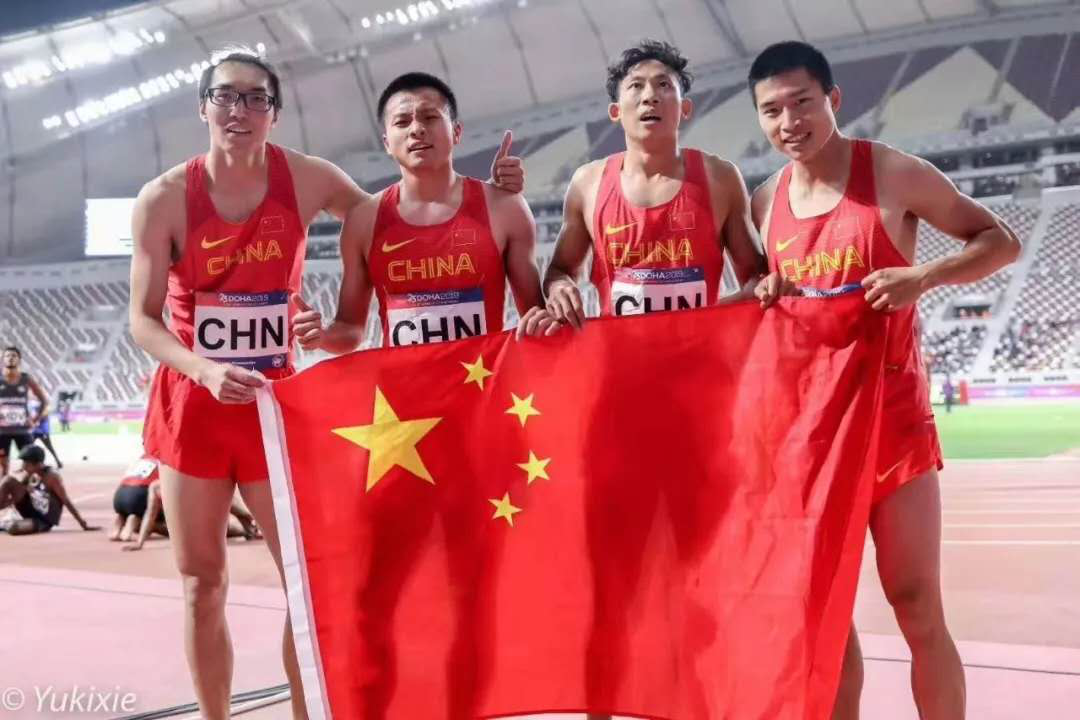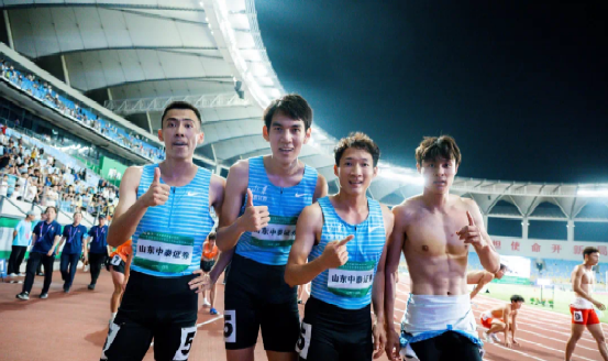宋家辉(左二)参加全国冠军赛4×400米接力获得冠军,并打破4X400全国记录