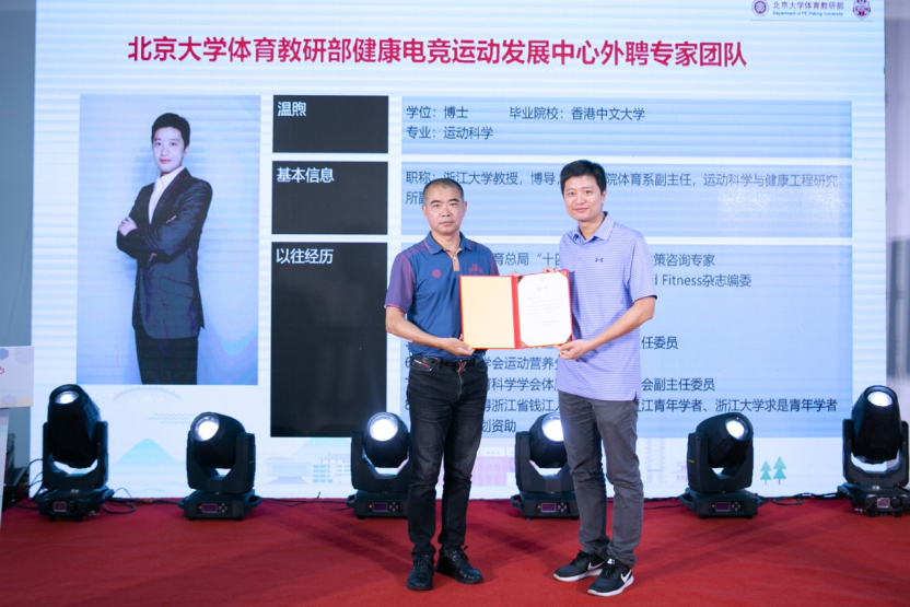 At the launching ceremony, Mao Zhihe, deputy secretary of the sports teaching and Research Department of Peking University, presented to He Wei, deputy director and associate researcher of the sports training research center of the Institute of sports science of the State Sports Administration, Wen Xu, deputy director, professor and doctoral supervisor of the Department of sports of Zhejiang University, Bi Xiaoting, director of the experimental technology research center of Jiangsu Institute of sports science, Professor of Shanghai Institute of sports Doctoral supervisor Wang Ran, Deputy Secretary General of sports training branch of China Sports Science Society, physical fitness coach and scientific research coach of the national synchronized swimming team, Zhao Dantong, and Wang Jingjing, associate researcher of Sports Science Research Institute of the State Sports Administration, issued letters of appointment to officially establish the health E-sports scientific research team of the center.