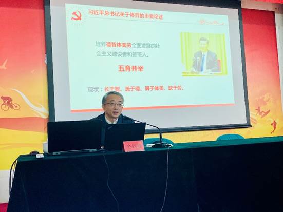 接着,安钰峰以“北大体育人的使命与担当”为主题,以习近平总书记关于体育、教育的重要论述精神为指引,以培养德智体美劳全面发展的社会主义建设者和接班人为目标,就如何加快构建“五育并举”人才培养体系进行阐释。他强调,习总书记在全国教育大会上提到,要树立健康第一的教育理念,开齐开足体育课,帮助学生在体育锻炼中享受乐趣、增强体质、健全人格、锤炼意志,这“四位一体”的目标,既对新时代学校体育要做什么、怎么做,给出一个明确的路径,也对中国学校体育发展给予了全新的定位。他要求体教部师生认真学习领会、学懂弄通习近平总书记在全国教育大会上的重要讲话精神,要认真贯彻落实新举措,做到“教会、勤练、常赛”,实现 “四位一体”的目标。