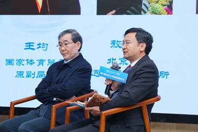 Then, the high-end round table dialogue of the main forum was carried out under the auspices of Professor Zhong Bingshu of Capital Institute of Physical Education. The panellists for the discussion and dialogue were Chen Hongjie, professor of the School of Education, Peking University; Wang Jun, former Deputy Director of the General Administration of Sport of China; Ao Yingfang, honorary Director of the Institute of Sports Medicine, Peking University; and Chen Gong, director of the Institute of Population Research, Peking University.