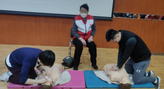 其次,参培人员分组进行实操练习,培训讲师逐一指导规范心肺复苏流程步骤,以保证参培人员真正的学的会并能够学以致用。