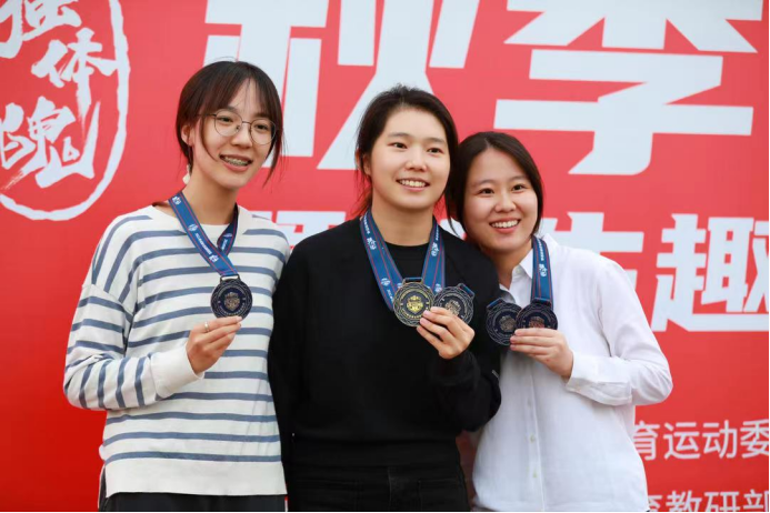 获奖的同学们陆续领奖并合影留念,在北大红的展板前,在举起的手机、相机镜头中,随处可见一张张热情洋溢、活力满满的笑脸。人们常说,秋天是收获的季节,而秋天在美丽的燕园参加运动会则无疑是收获健康、收获友谊、收获荣誉的头等快乐大事。熟悉的五四体育场见证了一代代北大人在其上挥洒汗水,突破自我,留下了无数珍贵而又美妙的瞬间,正是“恰同学少年,风华正茂”。
