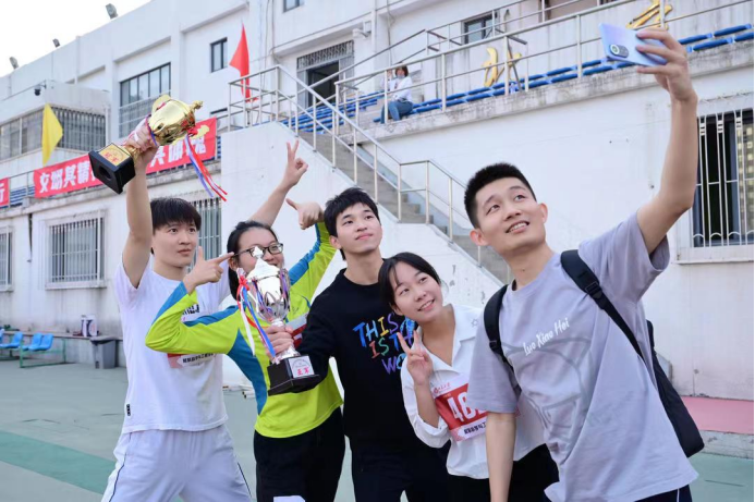 上午,天色逐渐放晴,阳光明媚。同学们奔跑在凉爽、和煦的秋风里,露出自信、青春的笑容。他们或参与径赛项目,努力调整呼吸,瞄向前方的终点线,在耐力与爆发力等多方面突破自我、不懈奋斗;或参与田赛项目,在助跑、起跳、腾空、落地或是蓄力、投掷等等瞬间享受力量与激情,一遍遍寻觅自己的最佳状态,力求发挥自己的全部潜能;或参与团队项目,在不断尝试、磨合、摸索中达致默契的配合,永远有人相伴身边,彼此支持、互相鼓舞,在运动中收获协作的快乐,感受团队的力量。
