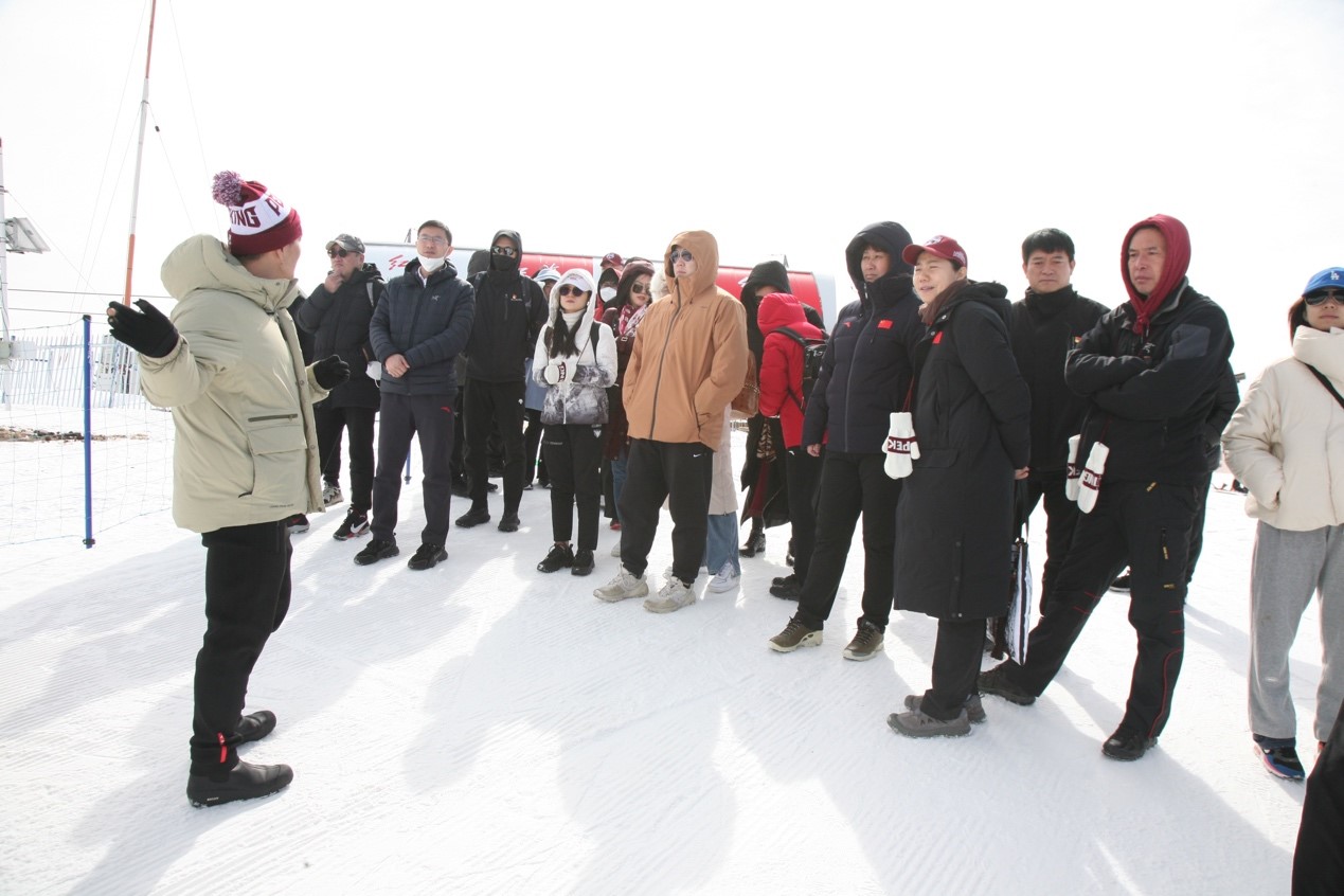 随后,大家跟随冬奥会期间作为国内技术官员在这里工作了50天的刘博老师来到室外,听他详细介绍了冬奥赛道的设置以及比赛情况。