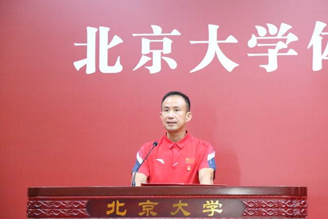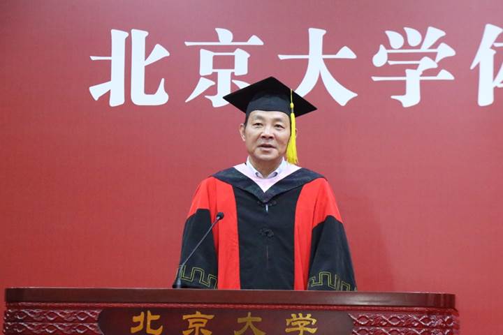 教师代表李宁教授发言。他表示,同学们从北大体教部毕业,他们的人生已经打上了体育的烙印。他希望同学们无论以后继续深造,还是就业工作,所从事是否与体育相关,都要以丰厚体育精神为依托,用竞争、合作、拼搏、顽强争取未来的超越、实现希望,以更快、更高、更强、更团结的精神跨越障碍、克服困难,以公平、公正、公开的准则创造美好的社会。他希望同学们在竞争中成长,但同时要避免过度竞争。他希望同学们在面对大变局时积极投入到国家发展中,将自己的人生与中国的未来联系在一起。