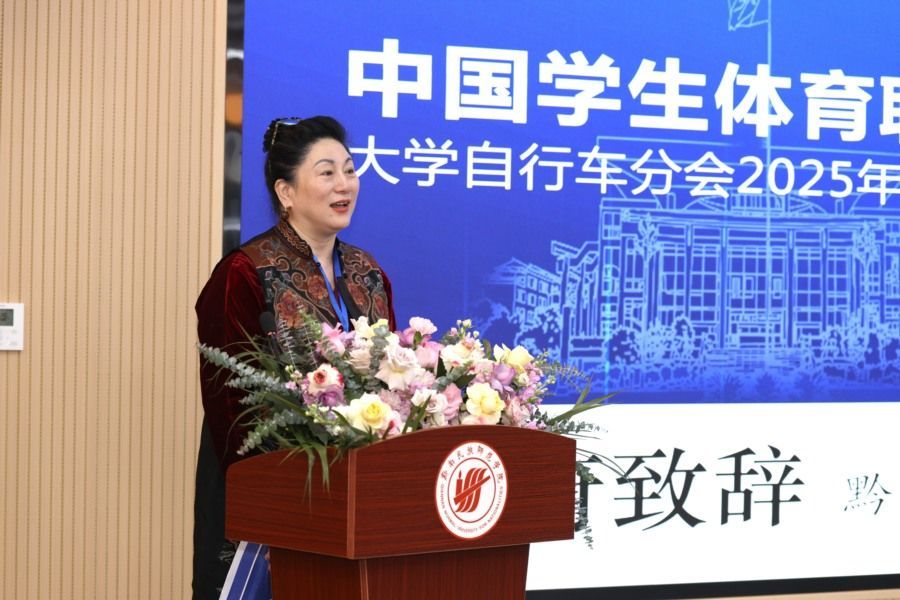 黔南民族师范学院副校长李泽平首先致欢迎辞。他代表承办方向远道而来的嘉宾表示热烈欢迎。李泽平指出,黔南民族师范学院始终将体育工作视为人才培养的重要组成部分,学校自行车队连续四年斩获贵州省高校山地自行车锦标赛团体积分一等奖,学生吴珍扬更入选国家队参加了2024年世界大学生自行车锦标赛。他特别分享了校运会上学生扛着断链自行车坚持冲过终点的感人案例,生动诠释了“永不言弃”的体育精神,这正是高校开展自行车运动的育人价值所在。据悉,这是黔南民族师范学院首次承办此类高规格的全国性体育单项分会年度工作会议,体现了学校在推动校园体育文化建设方面的决心与实力。