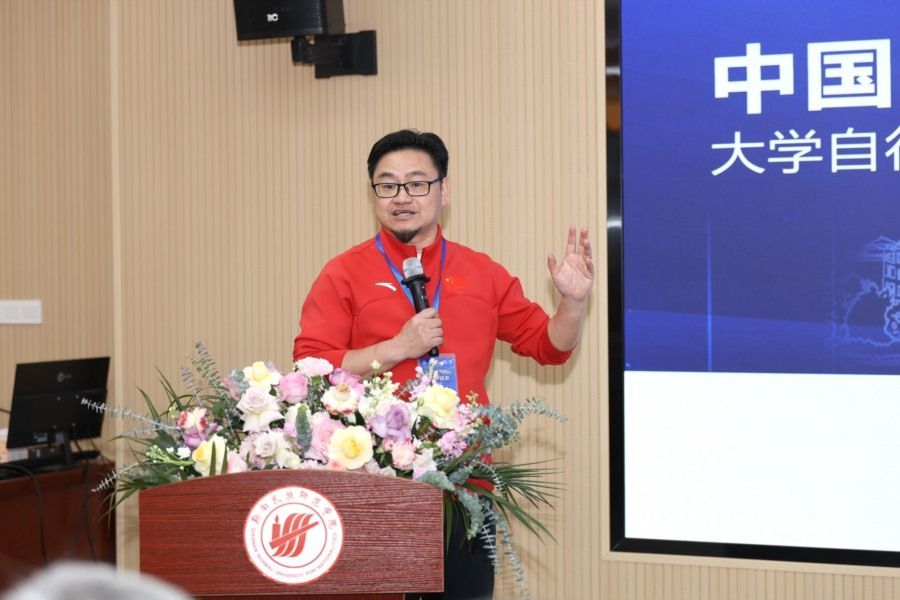 教学科研部上海大学许汸教授汇报了全国高校自行车课程调研情况。数据显示,目前已有33所受访高校中12所开设了自行车课程,但仍面临器材维护难、经费支持不足等痛点。许汸提出,“无社团不课程,无课程不专业”,建议各高校利用AI辅助教学、建立动态考核标准,以课程建设为底层逻辑,推动校园自行车运动的可持续发展。