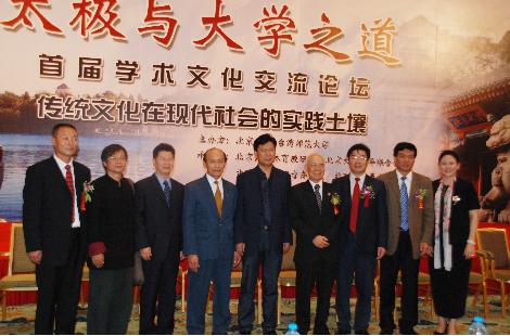 论坛由国家教育部语言应用管理司司长王登峰宣布开幕。北大副校长刘伟教授发言,回顾了以往几次北京大学与台湾师范大学之间以太极武艺为桥梁的两岸文化交流活动,表示两岸高等学府在弘扬传统文化方面肩负着庄严的历史使命。台湾师范大学前校长郭义雄教授表示,两岸文化交流应该立足于大学校园,立足于青年人的身体力行。