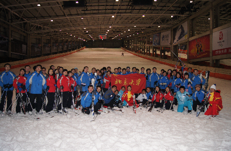 2010年7月21、22日两天,滑雪协会在北京顺义乔波滑雪馆组织了两天滑雪体验活动。本次滑雪活动在何仲恺老师的带领和协会骨干成员雷畅、苏云翔、孙骥等的组织下,北大60余名同学免费体验了滑雪运动的魅力,同时在酷暑难耐的夏日收获了难得的清凉。