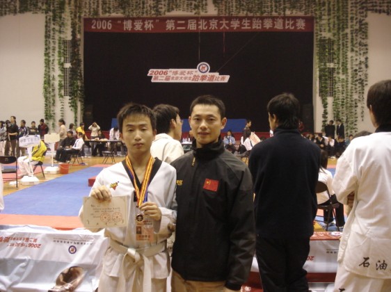 11月25日 ,由北京市大学生体育协会主办的2006 年第二届北京市大学生跆拳道比赛在北京林业大学隆重举行。来自北京24 所高校的223 名运动员展开激烈角逐。我校跆拳道队参赛的九名队员发挥稳定,取得了男子团体第六名的好成绩。其中,来自地空2005 级的曾道远同学获得男子54 公斤以下级亚军,并被评为“优秀运动员”;电子2004 级的崔国东同学和考古2005 级的张宇翔同学分别获得男子58 公斤级和男子67 公斤级第五名的好成绩。