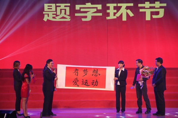 学生体育社团和活动的蓬勃开展,离不开指导教师的辛苦付出,他们来自校内外不同领域,但都满怀热情的默默贡献。为此,活动设置了年度最佳指导教师奖。指导多个体育社团的体育教研部何仲恺老师获得此项荣誉。郝光安主任为他颁奖,并与他共同书写完成了体育之夜的主题词––“有梦想,爱运动”。