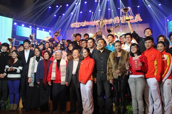 晚会对2012年度“新生杯”和“北大杯”所有项目团体和个人冠军进行了表彰,并以现场计时俯卧撑的方式进行了年度运动达人总决赛。来自工学院的2009级本科生胡号朋和地球与空间学院10级本科生赵月圆分别获得男女运动达人冠军,由雷声、冯坤、鲍春来等世界冠军为“新生杯”、“北大杯”和运动达人等赛事冠军颁发了纪念杯和荣誉证书。