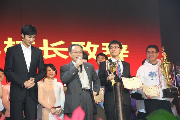接着,北京大学校长周其凤与蔡磊砢教授、雷声同学一起共同启动了北京大学2013年度学生校园体育活动。周其凤校长在随后的致辞中对获奖者表示祝贺,回顾了中华百年体育振兴之路。他指出,北京大学拥有优良的体育运动传统,同时也涌现了一大批非常优秀的体育人才,为祖国的体育事业添砖加瓦。他更从个人经历出发鼓励大家积极参与体育锻炼,希望同学们能学习运动员身上所体现的不懈拼搏、坚忍不拔的精神,真正在生活中实践“有梦想,爱体育”的晚会主题。