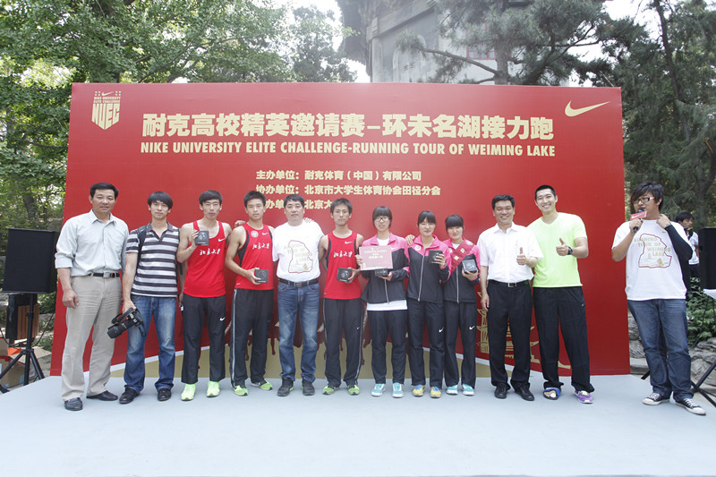 2013年5月25日上午,“耐克高校精英赛邀请赛-环未名湖接力跑”在北京大学未名湖畔圆满闭幕,来自全国各地高校组成的14支高水平运动员代表队及北京地区高校跑步爱好者组成的23支队伍共同完成了比赛,最终北京大学代表队获得专业组与业余组两项冠军。