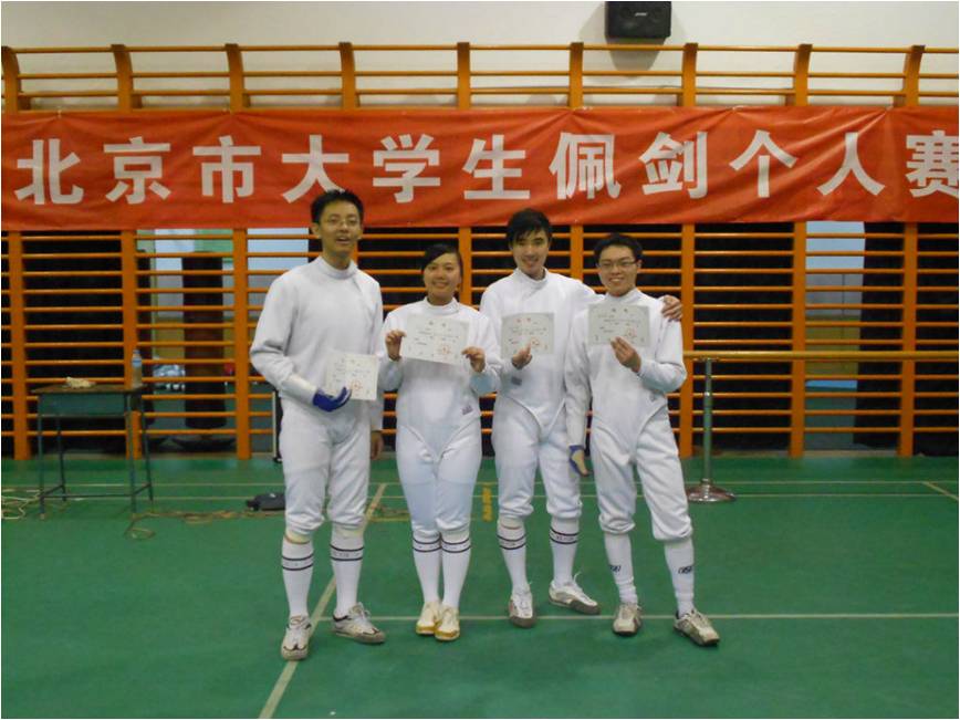 2012年北京市大学生佩剑个人赛于12月14日在中国青年政治学院体育中心举行,我校击剑队参加了四个组别中的三个并取得了可喜成绩。