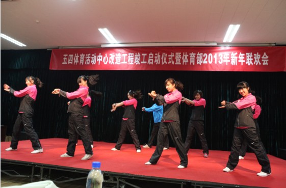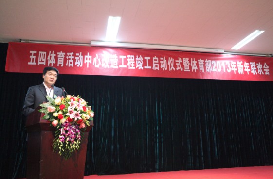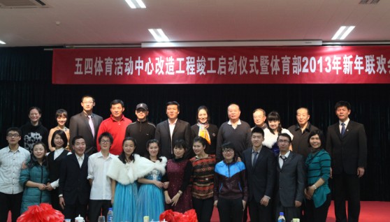 一流大学需要一流的人才,一流的人才需要一流的设施,一流的设施需要一流的服务保障。作为北大体育兴衰发展的重要见证,五四体育中心在废弃菜地上建成,伴随着一代又一代体育人的成长,记录着北大体育的足迹,见证着一步步的辉煌。2012年底,历经一年的加层、扩建、装修,新落成的五四体育活动中心窗明几净,整洁大方,场地中再次活跃北大学子青春的身影。郝主任谈到,做好一流的体育,服务于全校北大师生的身心健康是体育部一直以来的宗旨和目标,2013年体育部将继续努力,为北大体育的更快发展不断进取;追求卓越,不断创造新的辉煌业绩。最后,在辞旧迎新之际,郝主任代表体育部领导班子向一直以来关心支持体育部发展的校领导、各院系部门、全体教职工及学生们致以新春的祝福和节日的问候。