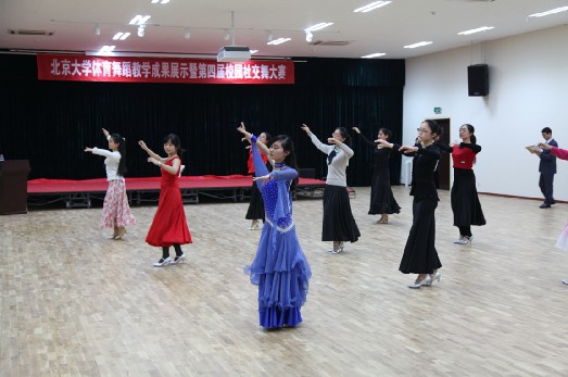 窗外冰天雪地,屋内舞者蹁跹。2013年1月5日,北京大学“体育舞蹈教学成果展示”暨“第四届校园社交舞大赛”在五四体育中心拉开帷幕,来自体育舞蹈选修课和体育舞蹈协会的舞蹈爱好者共200多人参加比赛。体育部吴定锋老师担任竞赛长兼裁判长,并邀请北京体育大学体育舞蹈专业选手田鑫,张景朕,李波及体育舞蹈协会竞赛部部长张玉豪担任评审,郝艳丽担任计分长,比赛由陈昊主持,由体育部和体育舞蹈协会共同主办,体育舞蹈协会承办,北大体育部、北大团委支持。