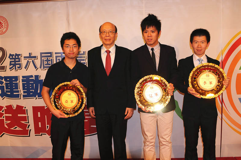 2012年11月3日晚,第六届两岸三校(北京大学—台湾大学—香港中文大学)学生运动友谊赛闭幕典礼暨欢送晚宴在台北圆山饭店举行,北京大学校长周其凤、台湾大学校长李嗣涔、香港中文大学校长沈祖尧与来自三校的150多名师生欢聚一堂,为本届友谊赛画上圆满句号。