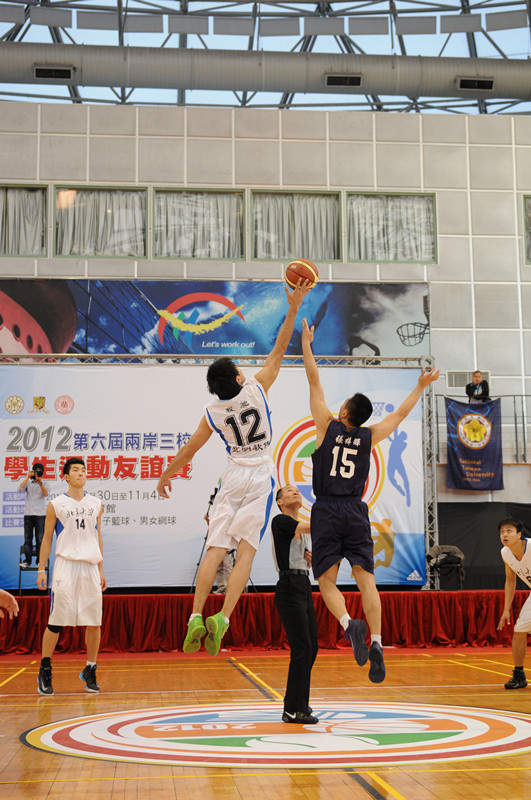 第六届两岸三校学生运动友谊赛由台湾大学承办,于10月30日至11月4日在台湾大学综合体育馆举行,来自北京大学、台湾大学、香港中文大学的近百名学生参加了男子篮球、羽毛球团体、网球团体三个项目的比赛。北京大学代表团分别获男子篮球赛冠军、羽毛球团体赛亚军和网球团体赛季军。