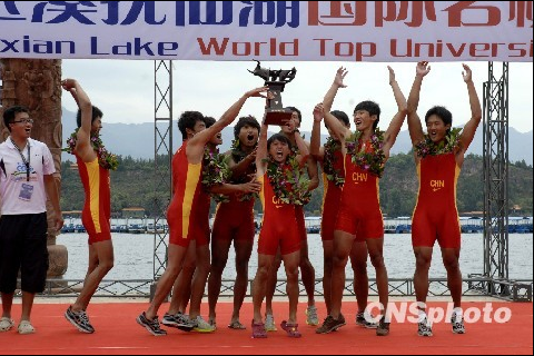 整场赛事最为激烈、最具观赏性的莫过于冠军争夺战,甫一开始,四艘赛艇就你争我赶,飞速向终点驶去。半程过后,实力超群的北大代表队遥遥领先,似乎冠军没有悬念。但就在最后五百米时,耶鲁大学奋起直追,逼近北大代表队。不过,北大代表队在最后时刻仍然牢牢掌握先手,率先到达终点,没有给耶鲁大学任何机会。清华大学和华南师大代表队紧随两队之后,分获三、四名。精彩的比赛也赢得了岸边观战的数千民众的阵阵喝彩声和掌声。