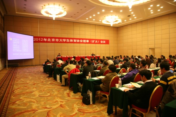 2012年3月9日,2012年北京市大学生体育协会理事(扩大)会议在北京昌平顺利召开。出席本次会议的领导有中国大学生体育协会常务副主席张燕军,北京市教委副主任郑萼,北京市大体协副主席杜松鹏、副主席钟秉枢、秘书长刘启孝、竞赛部部长郝光安、群体部部长张威等,以及来自北京各个高校的10余名校级领导,高校体育部主任等共计190余人参加了会议。会议由北京市大学生体育协会秘书长刘启孝主持。