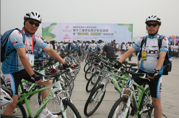 随着“绿色低碳、环保出行”的理念盛行,自行车受到了越来越多人士的青睐,京台青少年们也不例外。由北京大学和台湾成功大学、台湾师范大学、中山大学(高雄)等7所大学组成的“行者无疆,绿色骑行”自行车队中一色的动感单车,队员们在车上挥洒汗水,个个活力四射。来自台湾彰化师范大学的学生代表陈文成在发言中感谢主办单位对他们的邀约,表示自己要珍惜机会,多走走,多看看,增进对中华文化和大陆风土人情的了解与认知,加强与大陆青少年的交流与合作。他还对现场学生大声倡议:“用我们的双腿靠近北京的美!”
