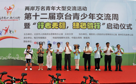 7月11日上午,第12届京台青少年交流周暨两岸万名青年大型交流活动北京分团活动开幕式在北京奥林匹克森林公园举行。北京市台办副主任黄塞溪、朝阳区副区长张立新、北京大学副校长李岩松等领导和1000多名京台两地师生参加了开幕式。