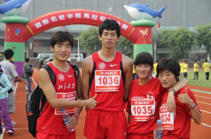 “国际亚洲名校半程马拉松接力赛”,于北京时间2011年10月30日在台湾成功大学举行。亚洲14所名校参赛,北京大学、清华大学、香港中文大学、日本大阪大学、日本千叶大学和新加坡大学,台湾地区有成功大学、台湾大学、中正大学、新竹清华大学、交通大学、中央大学、中山大学、台湾科技大学。我校派出四名同学参赛,分别是王强、赵冉、徐淑云、曹晓萍。