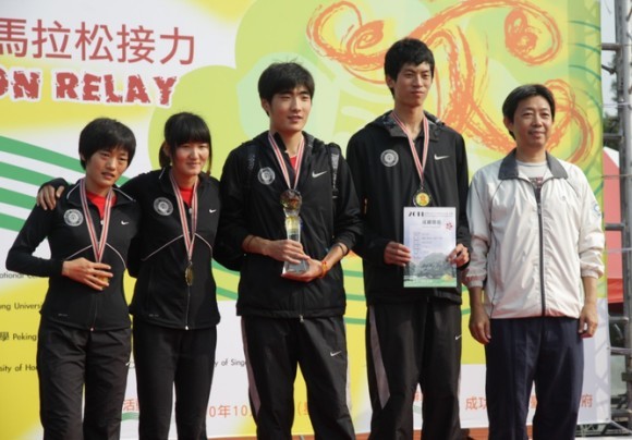 在比赛中北大原本落后大陆清华大学,但最后一棒的赵冉拿出北京市高校运动会5000、万米双料冠军的实力,力拼清华大学选手,最终逆转获胜,夺下冠军。比赛结果出炉,北大夺冠,清华大学第二,千叶大学拿下第3名,第4名是新加坡国立大学,第5名为大阪大学。我校四名学生在比赛中与台湾同学和其他国家的同学相互交流、建立友谊,弘扬北大文化,展现了北大学子的优良风貌。