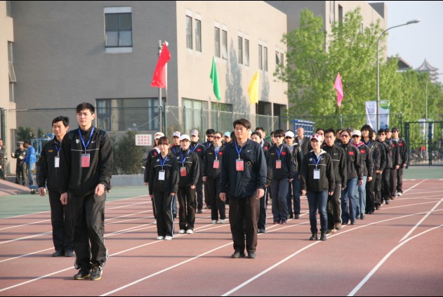 4月22日早上7点,体育部的老师们早早的在五四体育场主席台下集合,排练裁判员入场式。