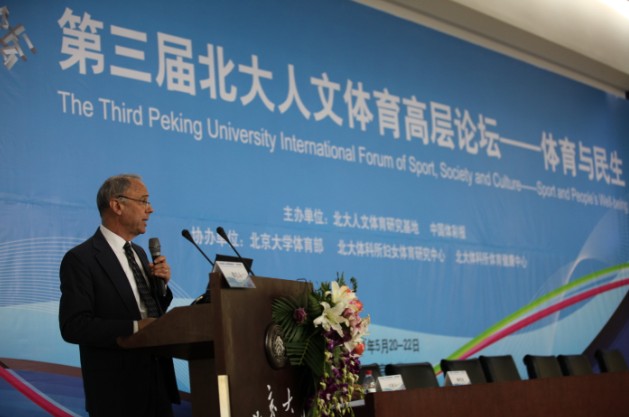 5月21日上午10点30分,第三届北京大学人文体育高层论坛的主题报告阶段在北大国际关系学院秋林报告厅拉开了序幕,耶鲁大学的布鲁斯·威克斯勒教授和北京大学校务委员会副主任岳素兰分别做了精彩的报告。报告由北京大学体育部主任郝光安教授主持。
