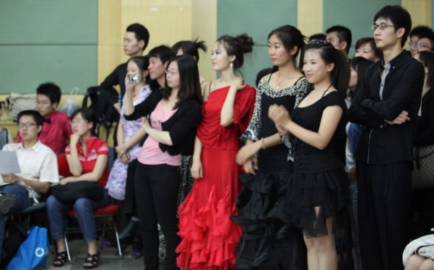 值得一提的是,学生选手中有不少是2010年11月份刚成立的北大国标队队员。每周二次的练习,使他们逐渐的成长起来,比赛中初见端倪,他们的表现意识,动作编排自然比一般的新手要成熟很多,大家齐声呼喊着自己喜欢的选手名字,场面异常热烈。