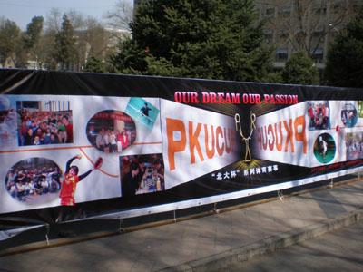 3月27日,为了庆祝北京奥运会倒计时五百天,北京大学学生会在三角地举办了“庆奥运倒计时五百天暨北大杯”主题宣传活动,与北大杯各项赛事相关的社团也积极参与了这次宣传活动。