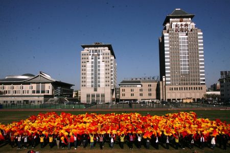 近一个月多的时间里,在每天的工间操、中午休息等工作空余时间,燕园内处处都有教职工挥动长绸扇的美丽舞姿,成为燕园一道靓丽的风景线,也在整个校园掀起了一股春季健身潮。为组织排演,校工会为参加团体操表演的1200多名老师每人配备一对长绸扇,并从3月初开始便启动了健身操演练。校工会组织来自全校各单位的100多位小教员进行长绸扇健身操教学培训,然后再由各单位的小教员对本单位参加团体操表演的教职工进行培训,并组织老师们的排练工作。