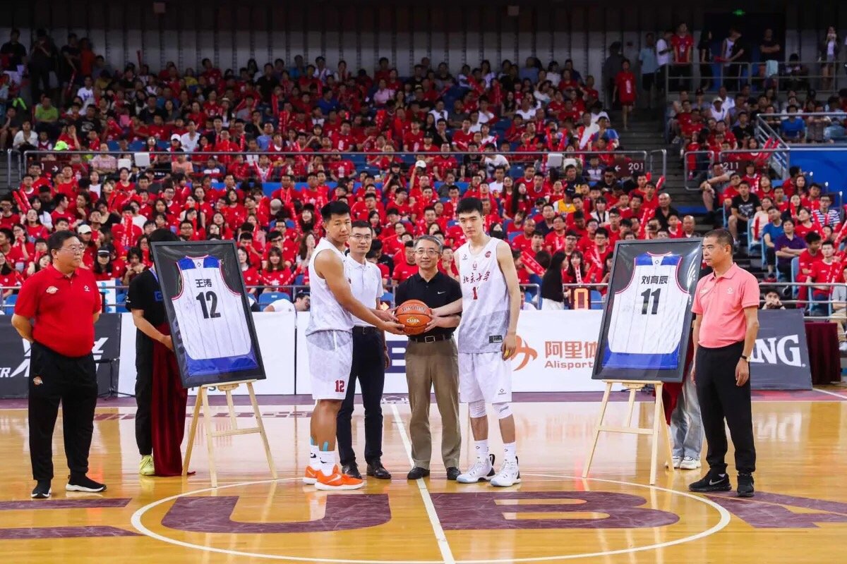 中场休息环节,北京大学分别为最后一届征战CUBA赛场的球员刘育辰、王涛举行了退役仪式。北京大学党委副书记安钰峰、北京大学体育教研部主任钱俊伟、副书记毛智和、男篮教练员张剑参与了退役仪式。