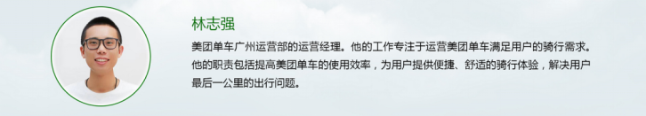 林志强: 很荣幸我们美团单车能参与到今天的论坛讨论,虽然我们尚未在华南理工投放运营,但我们已经在广东很多高校都有进驻,服务着约15w的师生,关于这三个问题,我言简意赅的分享一下;
