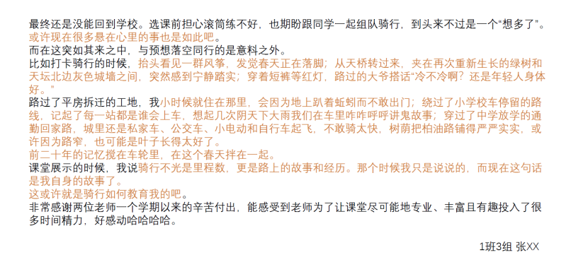 来源:北京大学2019-2020-2学期骑行教育课程总结,节选