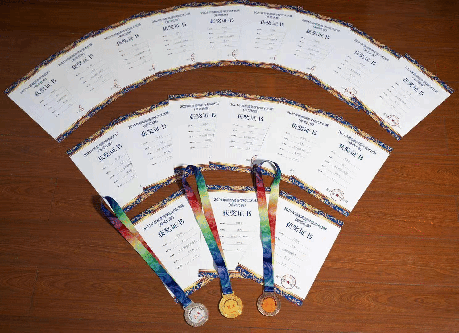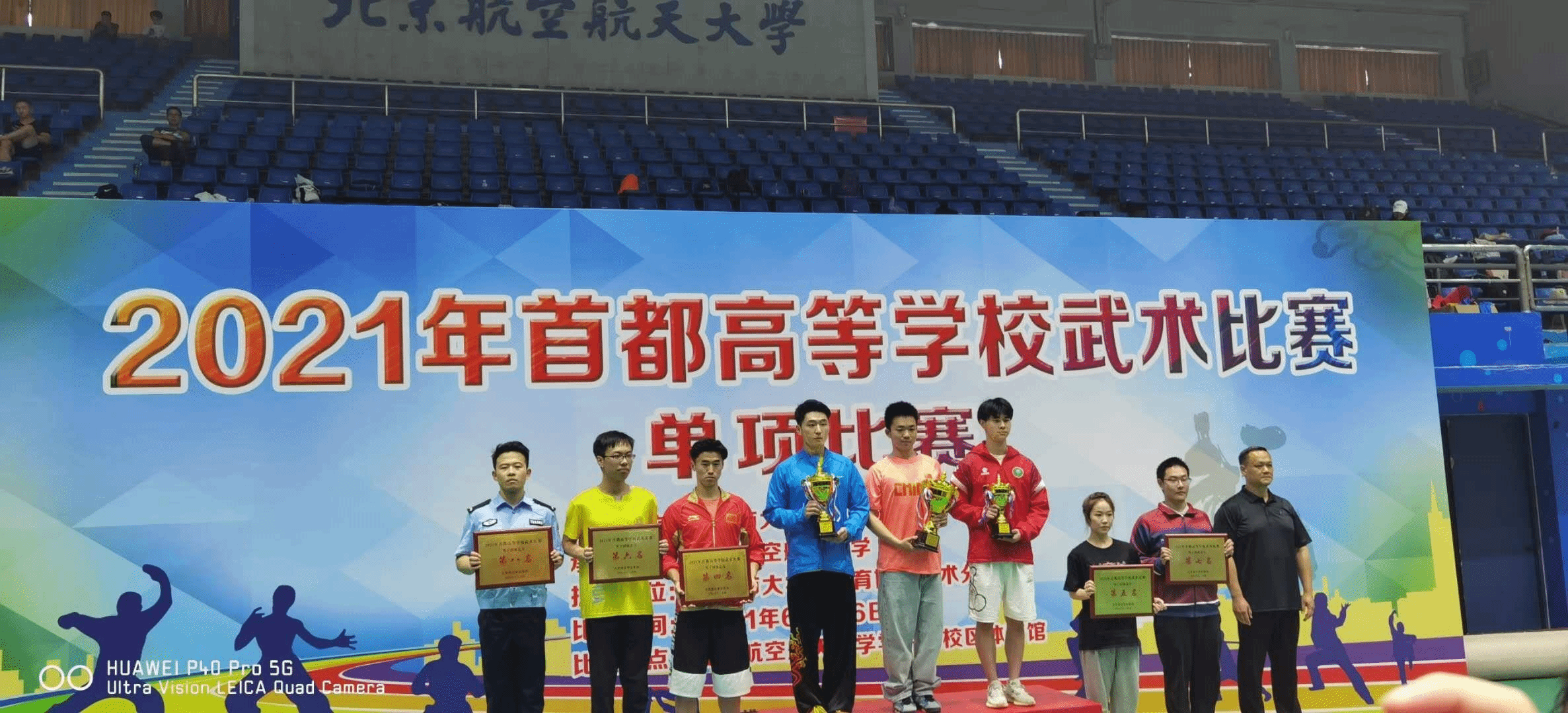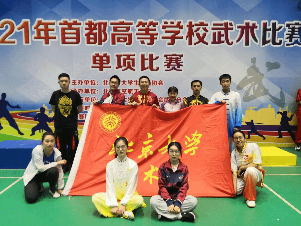北京大学武术代表队于2021年6月5日在北京航空航天大学举办的“2021年首度高等学校武术比赛”中斩获佳绩,各比赛项目累计获得金牌1枚、银牌1枚、铜牌1枚及前八名有效成绩15项,分获男女团体总分第七名和男子团体总分第七名。本次比赛优秀战绩的取得离不开北大体教部各方面的支持、教练员彭老师的指导以及全体队员的坚持和拼搏。